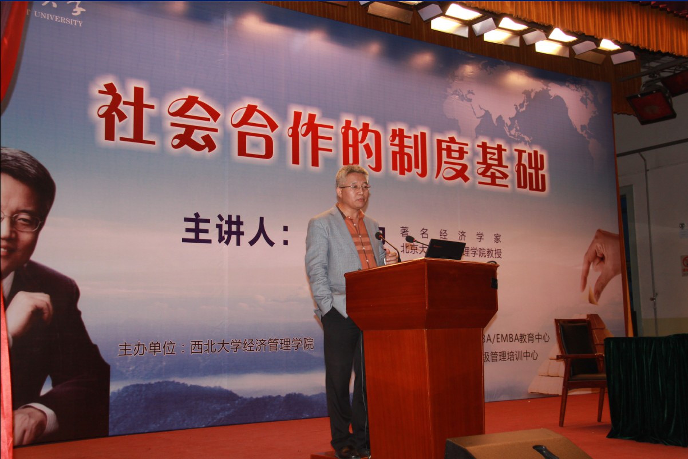 11月1日下午,经管学院“关中大讲堂”系列讲座之十四暨776net必赢官网第七届研究生学术月专家学术报告之八在太白校区大礼堂举行。我校杰出校友、著名经济学家、北京大学光华管理学院教授张维迎应邀作了了题为《人类合作的制度基础》的学术报告。我校部分教师、MBA和EMBA及科学学位研究生600余聆听了报告。报告会由776net必赢官网院长任保平教授主持。