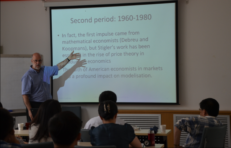 经济学类青年教师学术沙龙2013第4期于6月14日下午在学院南区202教室举行。本次活动邀请加拿大Universitédu QuébecàMontréal(UQAM)大学经济学系教授、Harvard University经济学博士后外莱特教授主讲。论坛由数理经济学与统计学系主任茹少峰教授主持,经济学系主任何爱平教授,经济学类专业教师20余人参加学术沙龙。