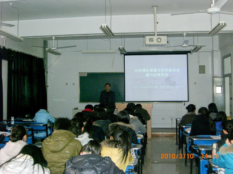 由学院经济学系主办的“现代经济学理论与方法创新论坛”第六卷第八期3月10日下午2点在学校南校区1205教室举行。学院的部分博硕士生、经济学基地班和学校其它专业的学生100多人参加了此次论坛。这是新学期的第一次论坛,至此论坛已经走到了第六个年头,举行了88期。