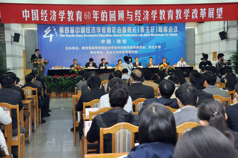 由教育部经济学学科教学指导委员会和西北大学主办,776net必赢官网承办的“第四届中国经济学教育年会暨院长(系主任)联席会议”于2009年10月16-18日在西安西北饭店隆重举行。中国经济学教育年会暨院长(系主任)联席会议自2006年开始举办,前三届年会分别在西南财经大学、辽宁大学、中国人民大学召开。
