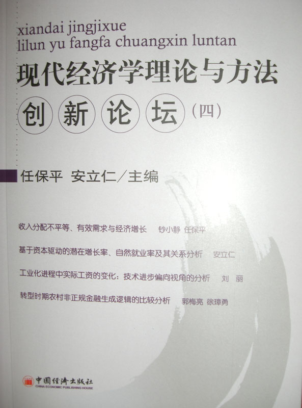 2008年12月12日,《现代经济学理论与方法创新论坛》第四辑由中国经济出版社正式出版了。《现代经济理论与方法创新论坛(四)》是以我院经济学系、西北大学国家经济学基础人才培养基地主办的“现代经济学理论与方法创新论坛”讲稿为主体的一本论文集,由任保平教授、安立仁教授担任主编。