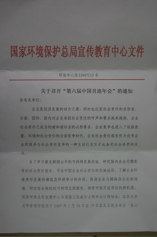 关于召开“第六届中国贝迩年会”的通知