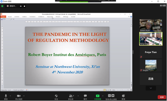11月4日下午,我院邀请位于法国巴黎的美国研究所(the Institute of Americas)客座研究员、法国调节学派代表性人物之一、我校学科创新引智计划(111计划)——“国外马克思主义经济学与中国特色社会主义政治经济学引智基地”国外学术骨干成员之一的Robert Boyer教授为师生举行线上学术讲座。