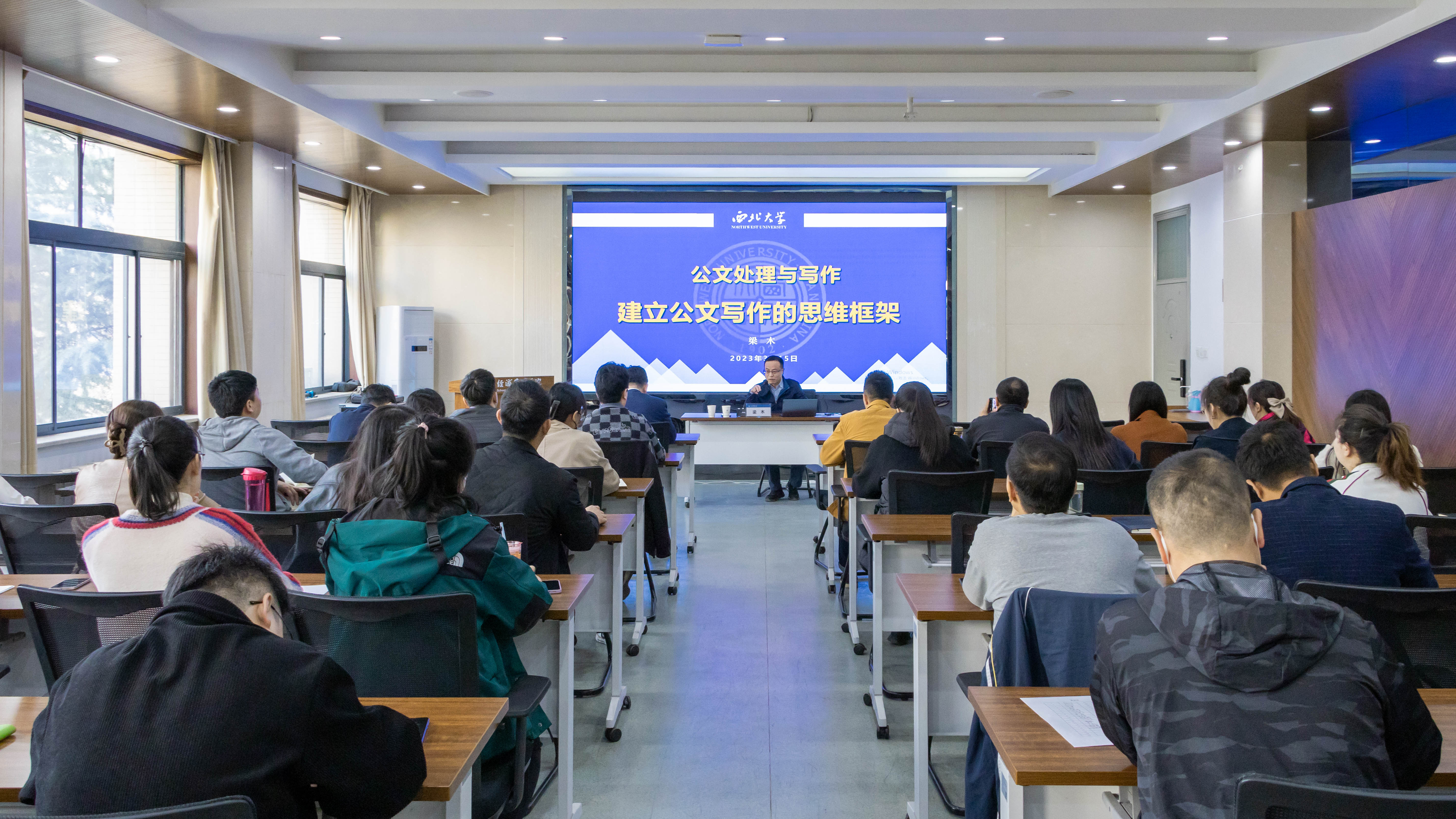 在本次授课过程中,梁木从身边的“公文事故”、公文认识、法定公文的格式、种类和常见问题和公文处理规范、案例分析等五个方面进行了生动的讲解。他结合自身工作实际,细致讲解了公文格式种类和常见问题、公文写作架构与思路,并通过鲜活的实例进行了深入浅出的讲解。