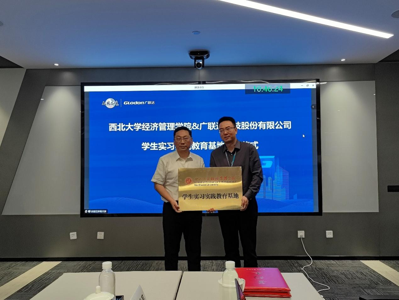 在座谈会上,四维数邦生态发展中心总经理李严向信管专业的师生介绍了四维数邦的企业愿景、发展战略、核心竞争力和商业模式,同时还介绍了四维数邦在人才引进和培养方面的政策和机制,欢迎信管专业的优秀学生加入四维数邦。我院李辉副院长对四维数邦表示感谢和赞赏,认为四维数邦是时空大数据行业的佼佼者,时空大数据管理是信息系统领域的一个重要分支,具有广泛的应用前景和社会价值,信管专业与四维数邦有着紧密的联系和契合度,希望通过此次基地建设,加强双方的交流和合作,为信管专业的教学和人才培养提供更多的资源和机会。李辉副院长和李严总经理共同为西北大学经管学院学生实习实践教育基地揭牌。
