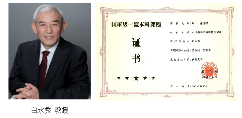 1.《中国市场经济理论与实践》入选国家级一流本科课程。课程由白永秀教授、吴振磊教授、吴丰华教授团队主讲。课程对中国市场经济的微观体制、宏观体制、市场制度、运行机制及存在的深层次问题等进行了深入浅出的分析,全面、系统地介绍了中国特色现代市场经济理论与实践。