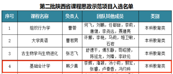 2.《基础会计学》入选第二批陕西省课程思政示范项目。