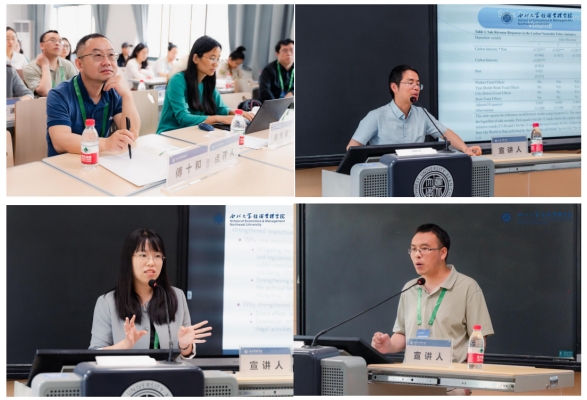 博士生论坛(六)由西北大学南士敬教授主持,山东大学梁超研究员点评。西南财经大学的叶淇作了题为《Trade Liberalization and Industrial Agglomeration: Evidence from China》的报告;厦门大学的陈琳艳作了题为《叙事性货币政策冲击构建、信息溢出与宏观经济运行》的报告;南京大学的肖以乐作了题为《Losing target: Randomized environmental inspections and enforcement efficiency》的报告。