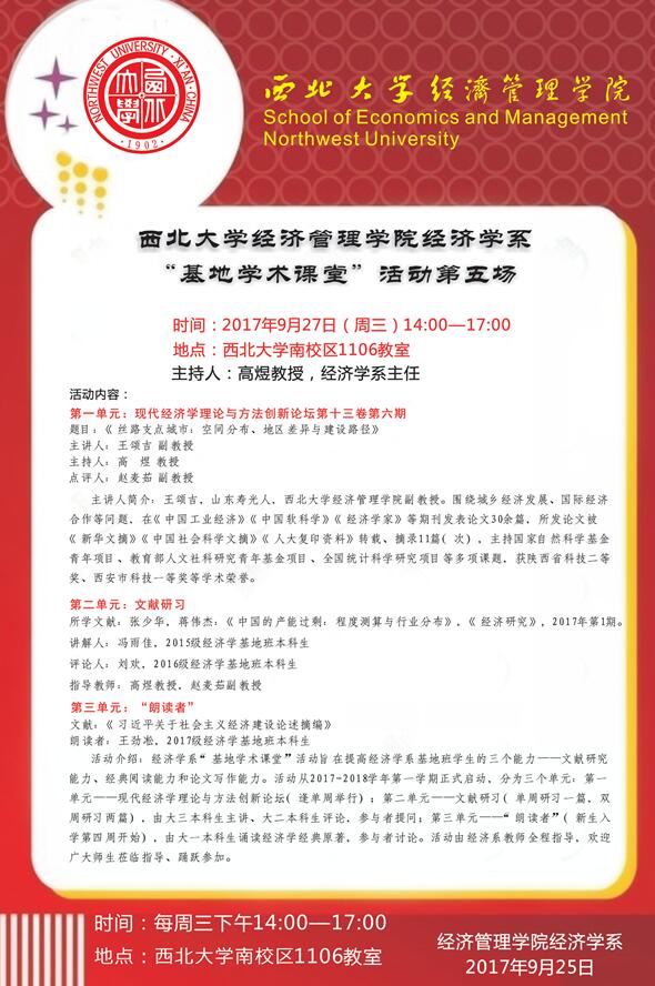 经济学系“基地学术课堂”活动第五场