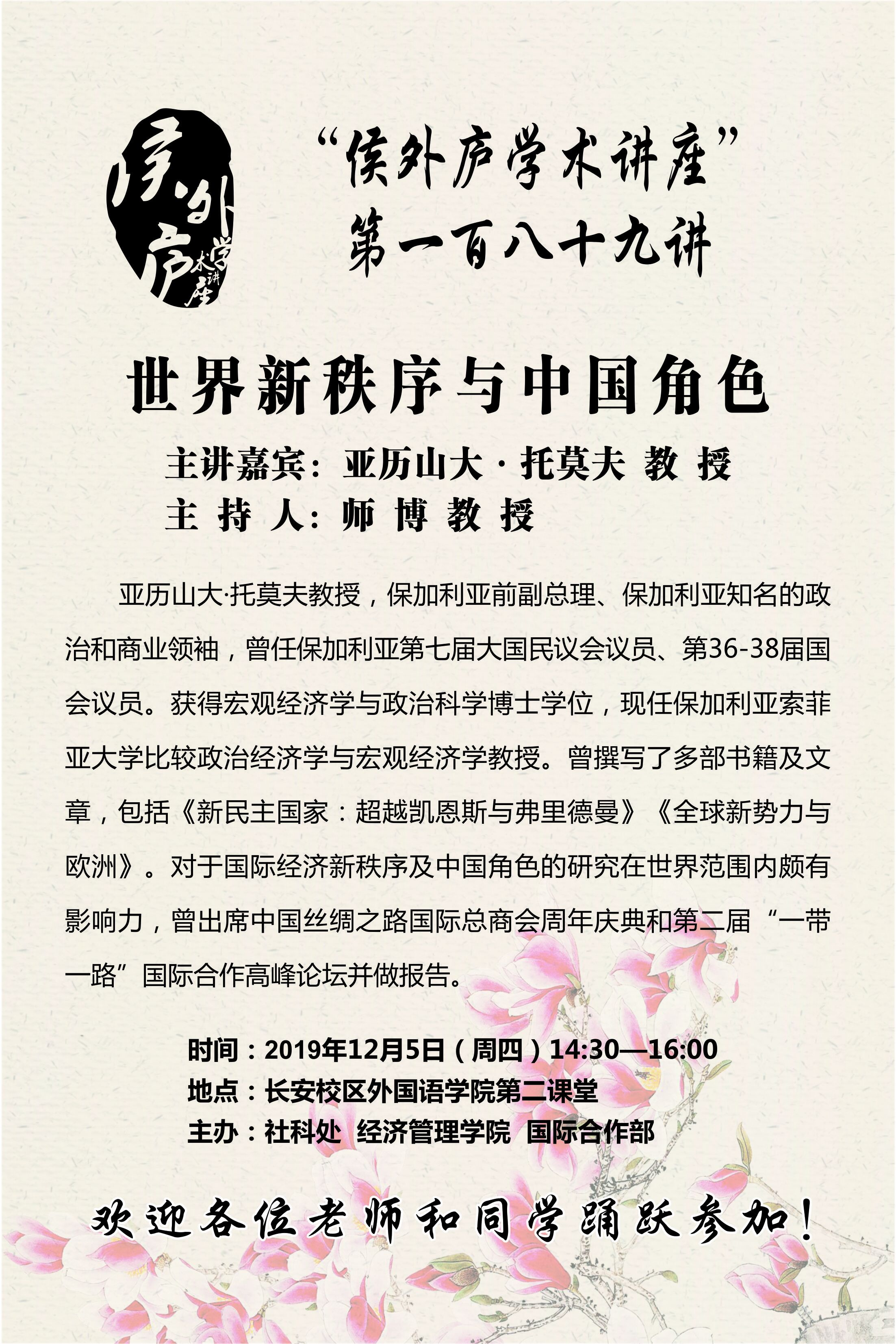 “侯外庐学术讲座”第一百八十九讲-世界新秩序与中国角色