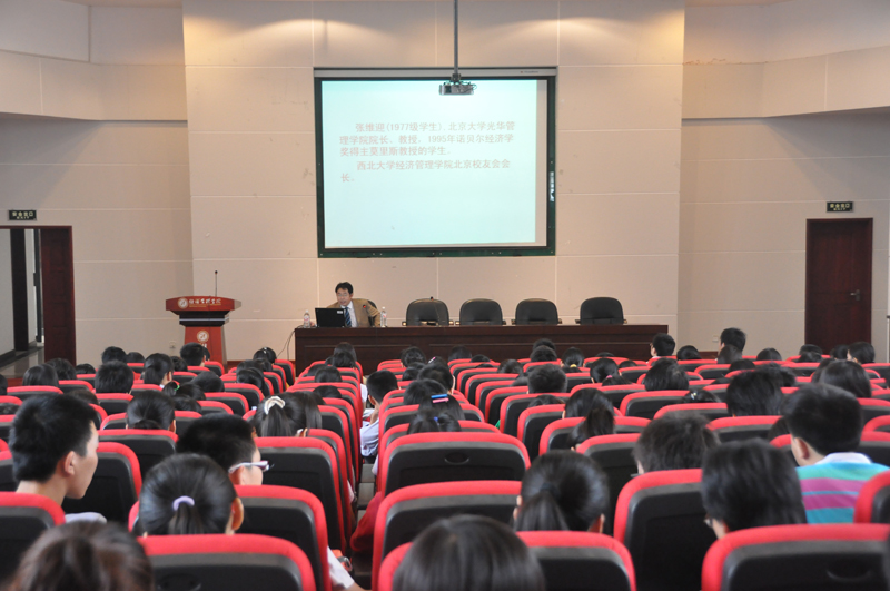 卢教授对全体新生表示了热烈的欢迎,他带领大家饱含深情的回顾了我院的辉煌历史,介绍了一大批从我院走出的老一辈的经济学家,并讲述了他们当年求学时的刻苦钻研,勇于创新的精神,接下来卢教授向同学们介绍了近年来我院的发展状况,目前我院在白永秀院长的带领下,正处于历史上发展最好最快的时期,向着国内领先世界一流的国际化学院迈进,涌现出的一批优秀的中青年经济学家活跃在国内外经济学领域。最后卢教授鼓励全体新生发扬和继承经管学院的优良传统,胸怀壮志,努力学习,做到“今天我以经管院为荣,明天经管院以我为荣”。