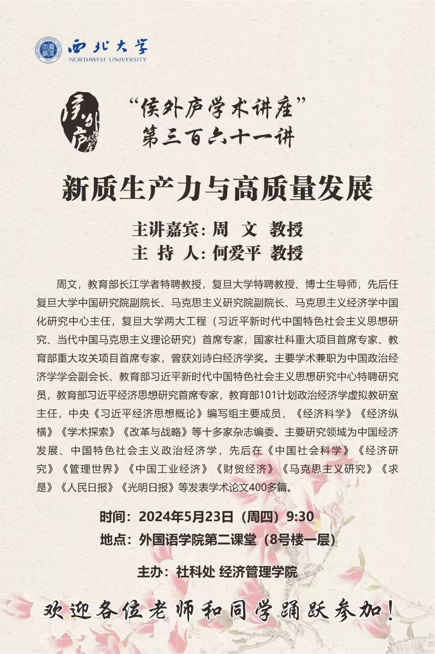 “侯外庐学术讲座”第三百六十一讲--新质生产力与高质量发展